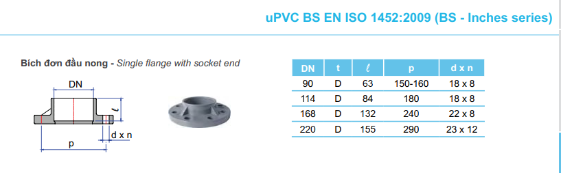 Thông số kỹ thuật Mặt bích PVC Tiền Phong