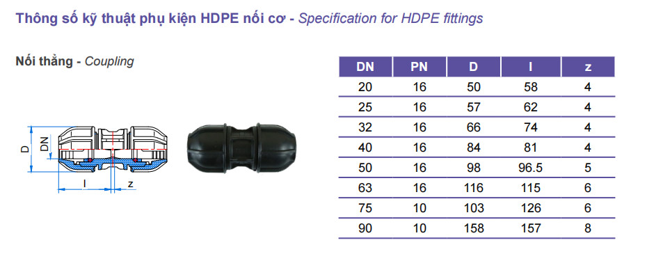 Ưu điểm Nối thẳng gioăng siết HDPE Tiền Phong