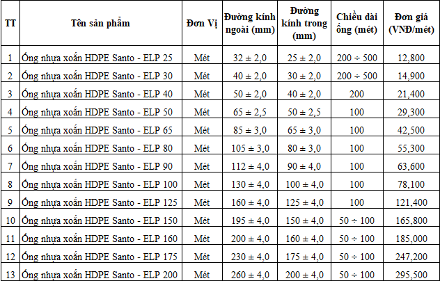 Dowload Bảng Giá Ống Gân Cam Mới Nhất