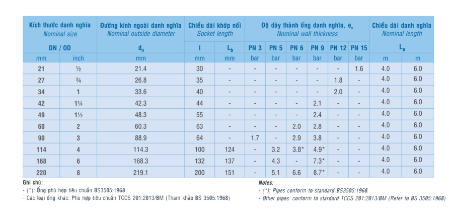 BẢNG GIÁ ỐNG VÀ PHỤ KIỆN PVC Bình Minh
