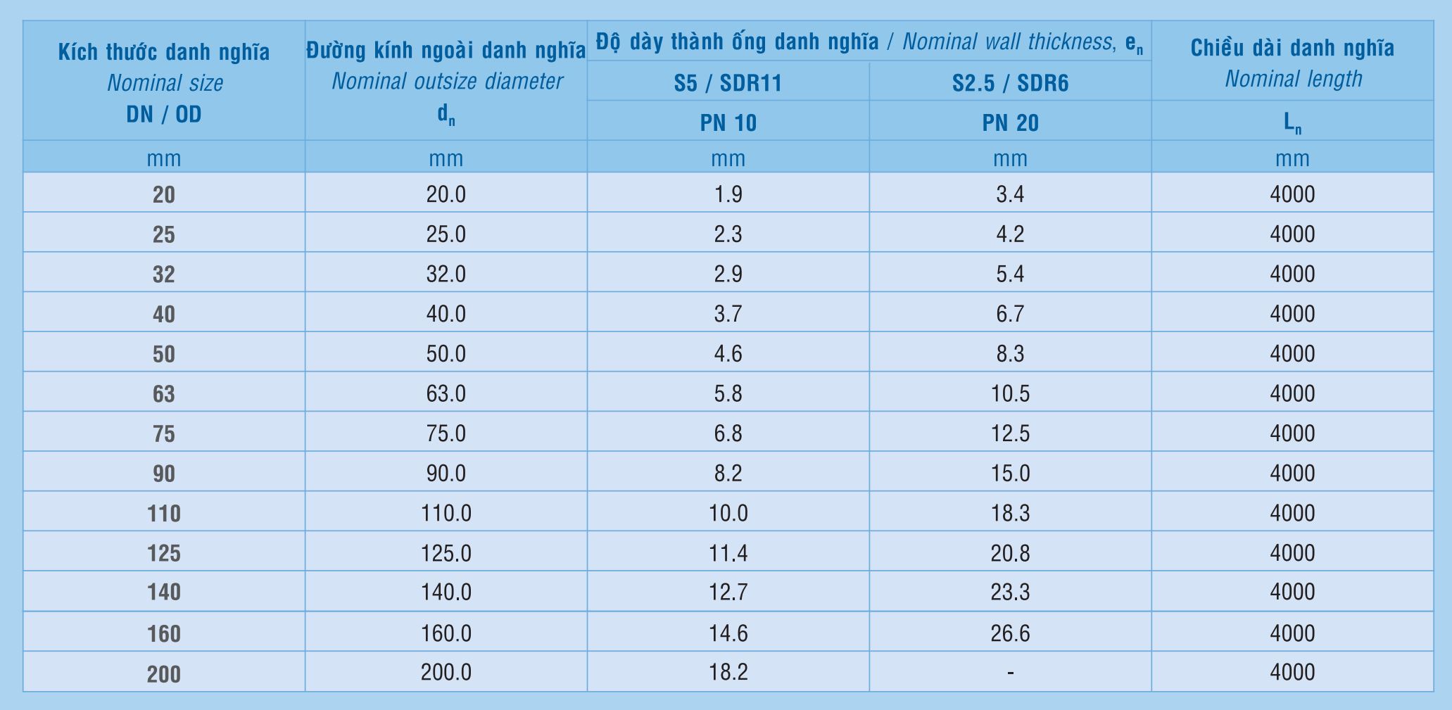 BẢNG GIÁ ỐNG VÀ PHỤ KIỆN PPR Bình Minh