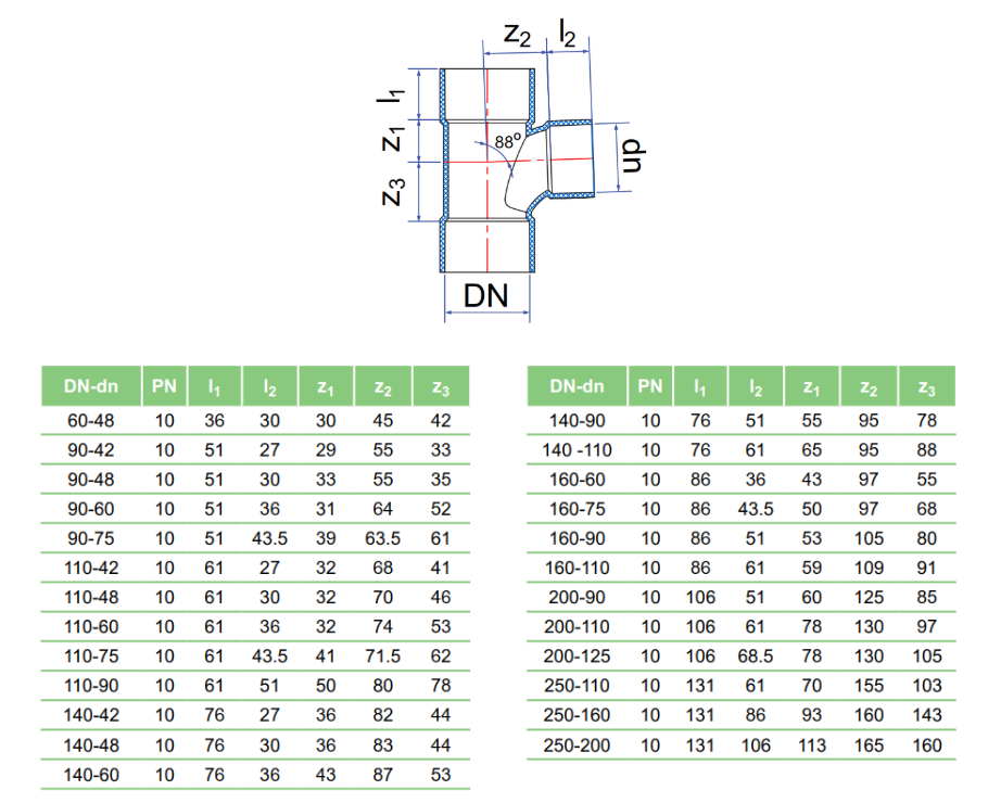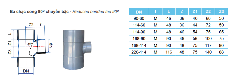 Thông số kỹ thuật Tê cong chuyển bậc PVC Tiền Phong