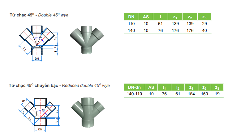 Thông số kỹ thuật Tứ thông PVC Tiền Phong